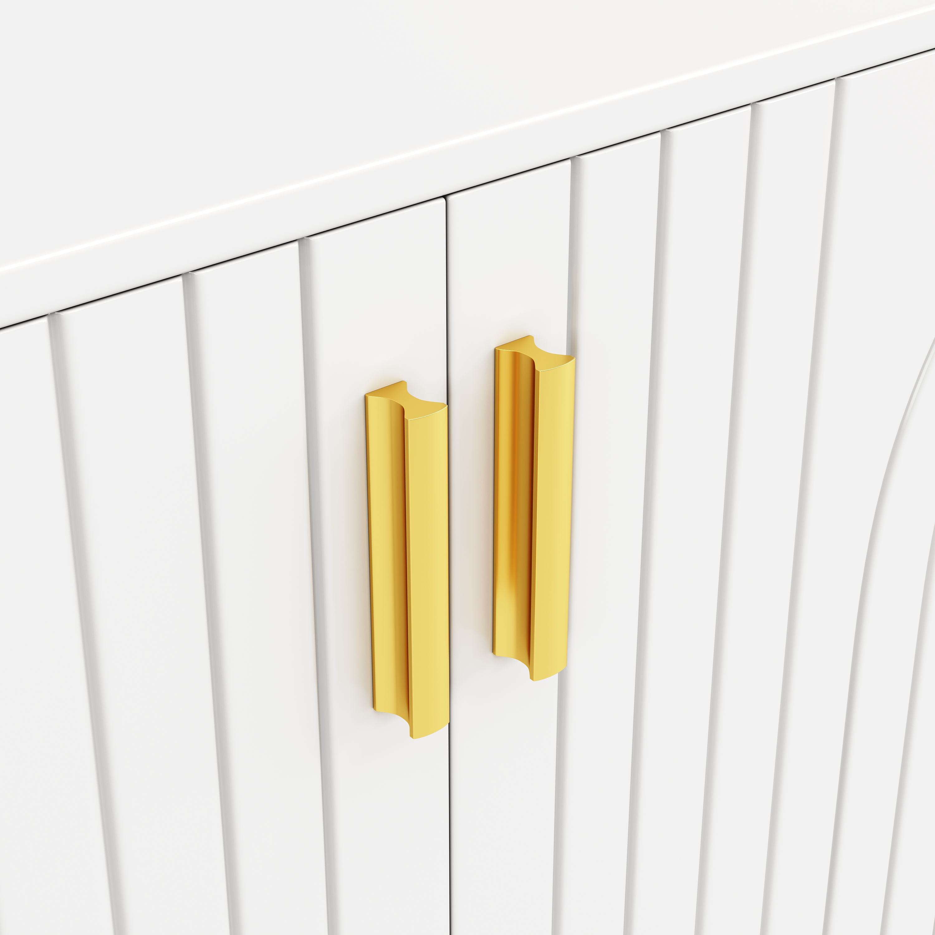 - The unique wave-shaped front door of this sideboard is full of elegance and flexibility. Its texture and lustre not only complement the cabinet door, but also add a touch of fashion to the entire sideboard. The luxurious and sophisticated atmosphere makes the sideboard an enchanting backdrop in the living room that is both functional and beautiful.